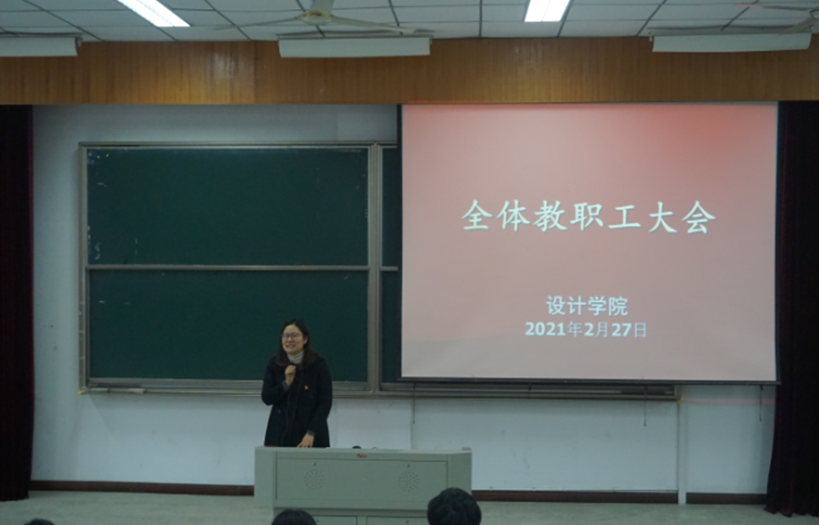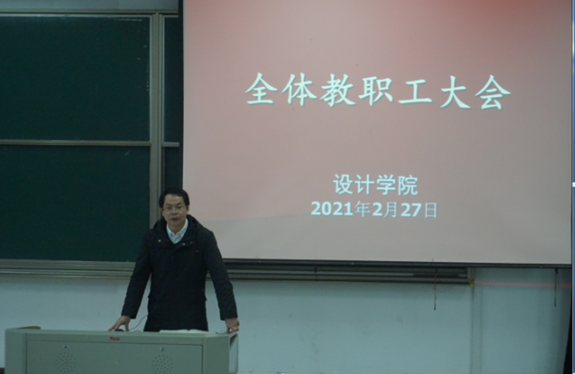 韦浩院长传达了学校2021年党委务虚(扩大)会的主要精神,重点学习卢新波书记、陆军校长在学习会上的讲话精神,对新学期学院的各项重点工作进行了部署。韦院长指出要围绕学校第四次党代会提出的“1358”战略部署,谋划好学院“十四五”发展规划,高水平推进学院办学内涵建设,继续围绕新一轮硕士点申报和学院核心目标任务,全力做好2021年高层次人才引进、联合培养硕士生、“五彩杯”艺术设计展演、毕业生外出采风、毕业展演、“互联网+”筹备等工作;要在实验室建设、重点平台建设、产教融合基地建设目标任务上有所提高;进一步推进国际化合作办学和中日韩师生艺术作品联展活动,高质量推动学院各项工作有序开展。