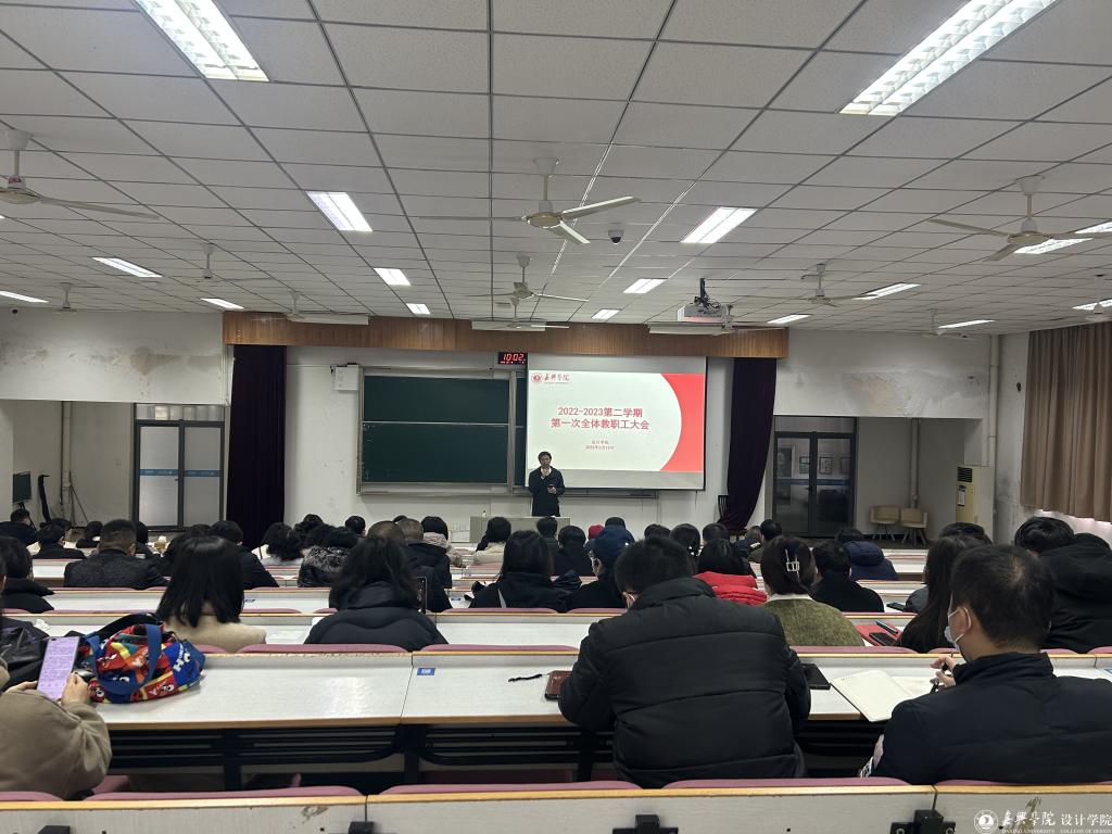 会上,韦浩院长传达了学校中层干部会议的主要精神,回顾了寒假学院各项工作和取得的成绩,并从十五个方面对新学期的重点工作进行了部署。他指出,2023年我们要深入学习贯彻党的二十大精神,围绕学校“1358战略”,紧密结合学院发展实际,凝心聚力,全力做好硕士点申报工作,加强科研成果产出,力争在省部级课题申报、省部级奖项培育等方面有所提高;进一步深化教育教学改革,加强一流专业和一流课程建设;加强师资队伍建设,做好高层次人才引进;对接地方相关产业发展,做好校地平台相关工作;加强国际化建设,派送教师出国访学;做好毕业设计展演等活动的组织工作等等。他要求,新学期全体教职工追求卓越,站在新起点,迎接新挑战,促进学院各项工作稳步推进。