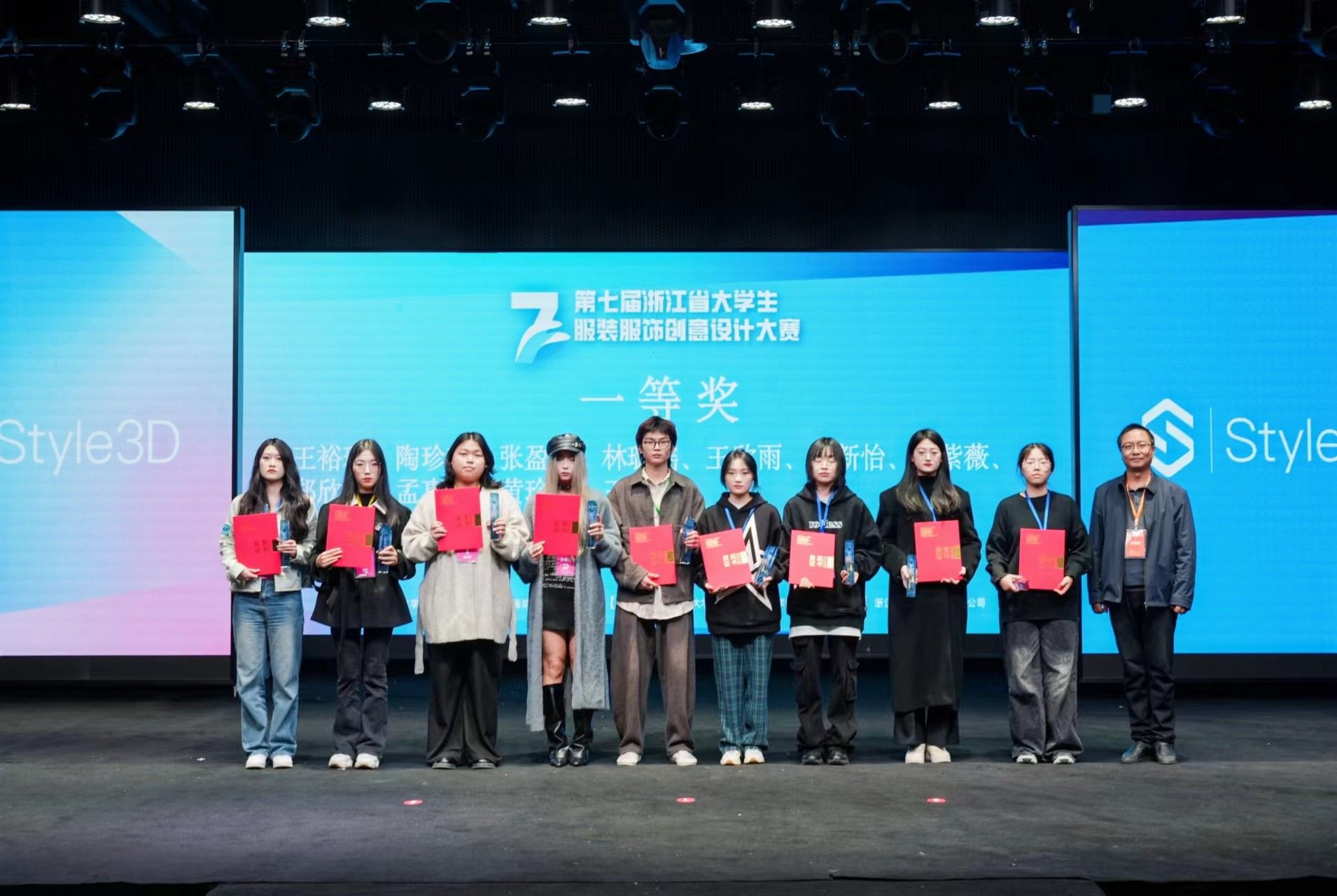 浙江省大学生服装服饰创意设计大赛,由浙江省大学生科技竞赛委员会、浙江省纺织工程学会主办,是浙江省唯一的服装服饰类省级学科A类竞赛。本次大赛以“智启•新生”为主题,涵盖服装服饰造型创意设计、纺织品创意设计、构成创意设计、科技创意设计、短视频创作、数字化时尚创意设计等六大赛道,共收到省内29所高校3700名选手的1790组作品,经过初赛、复赛、决赛三个阶段的激烈角逐,共产生一等奖44项、二等奖90项、三等奖176项。