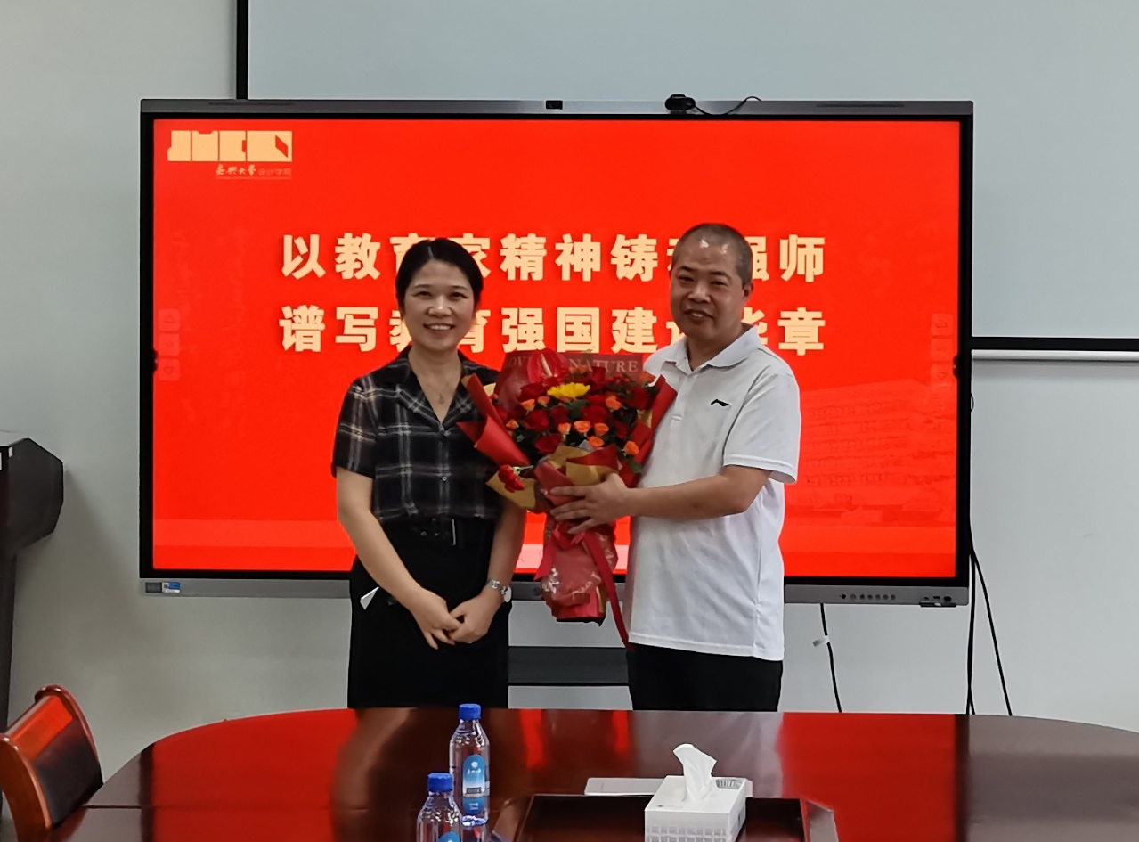 9月10日下午,在第41个教师节来临之际,校党委副书记陈立力莅临我院慰问教师代表,为王以华、邓洪涛两位老师送上了节日鲜花和真挚问候,并向全院教师致以节日问候、表达组织的深切关怀。学院党政班子成员和教师代表参加座谈会。
