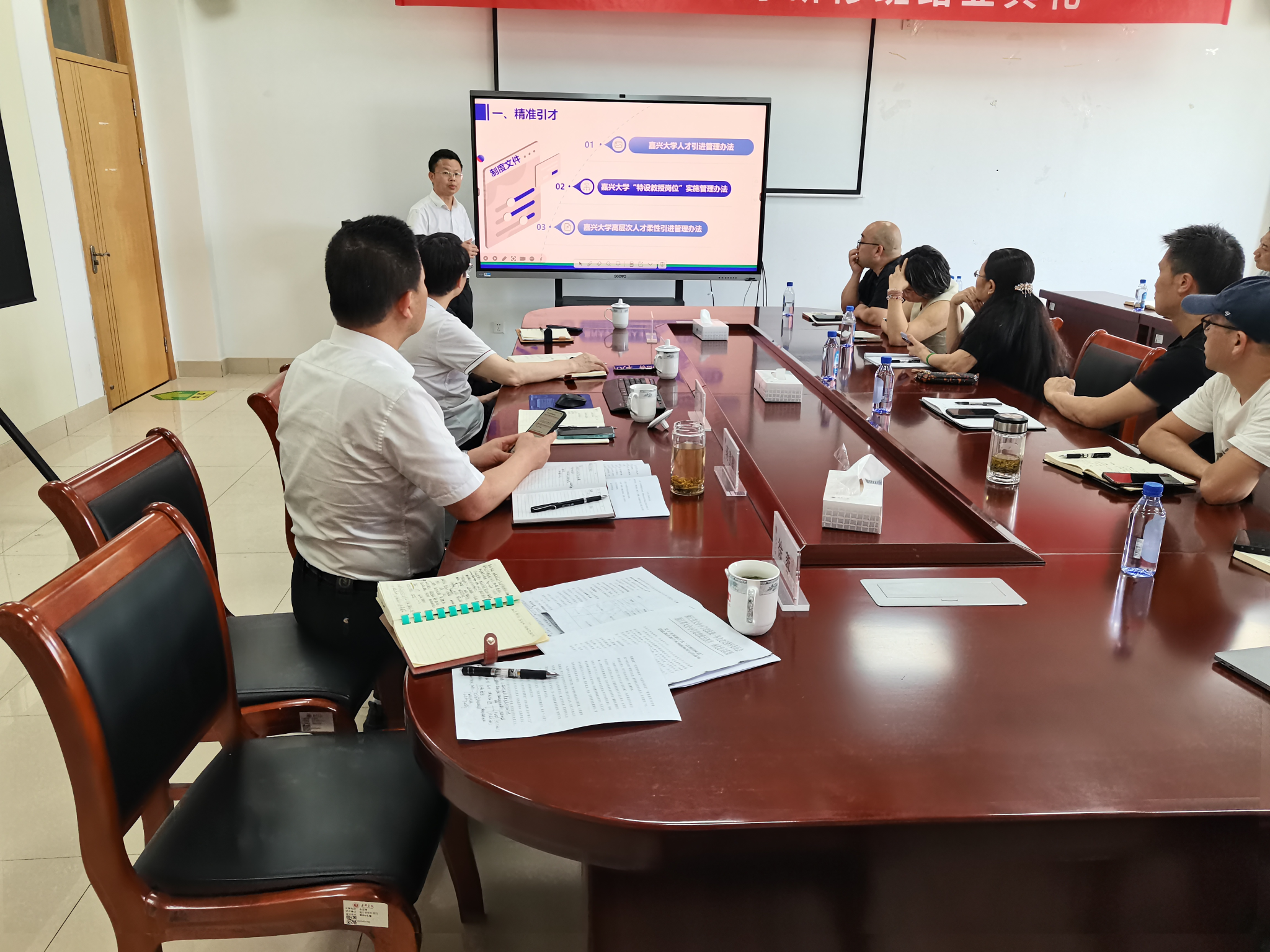 钟伟对学校人事和人才政策进行了解读,重点就人才引进、培育、评价、激励政策和学校绩效工资文件做了解读。与会人员围绕系统构建教师、干部、职员“三支队伍”,全面落实一号工程、一流意识、一把手工作、一流服务、一票决定的“五个一”要求,精准把握人才引、育、评、留、用“五个环节” 等进行了热烈讨论。 特别是对加强学院发展顶层设计谋划,科学制订引才计划,不拘一格引才,多措并举育才、留才等问题进行了深入研讨。韦浩院长充分肯定了参会教师们提出的意见、建议,就大家关心的问题进行了现场解答,分享了对学院发展方向的思考。蒋建其表示,要认真梳理大家的意见、建议,在党政联席会议上专题分析研究,将研讨成果转化为具体的制度、方案、举措和推动学院发展的动力。